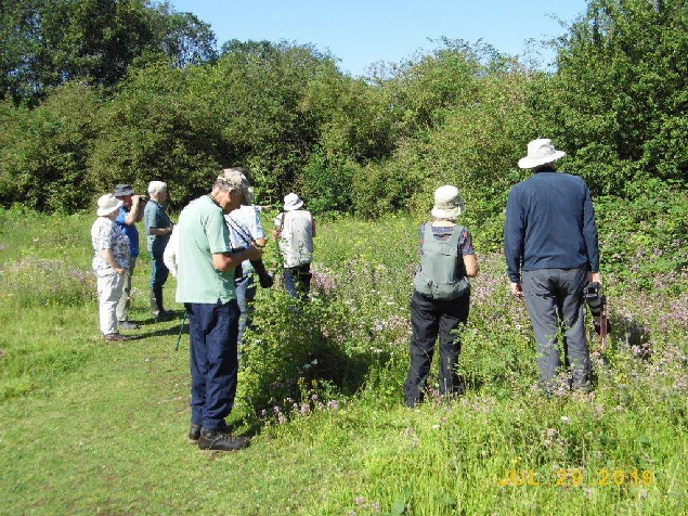 After a weekend of heavy rain, it was a welcome surprise for the Stamford U3A Birding and Nature Group, when 14 members assembled in the car park, at the Ketton Quarries Nature Reserve, SSSI. Monday morning, 29th July, turned out hot, clear sky, dry and calm. Birds were at an absolute minimum, (many species now in the moulting period)! So, the focus was on flowering plants and the insect populations on the reserve. The group started in the BBQ area, where butterflies were abundant: Silver Washed Fritillary and Gatekeepers were notable. Meadow Grasshoppers were seen and heard. Everyone then moved on in to ‘The Valley’, which was lush and thick with flowers and bushes. Chiff Chaff warblers could be heard in the trees; identity confirmed by their call-notes. The range of butterflies increased, and included: Ringlets, Meadow Brown, Peacock, Painted Lady, Marbled White, Brown Argus, Brimstone, Large Skipper, and the day flying moths: 6 Spot Burnett. Roesel’s Bush Crickets were heard stridulating in their masses, and many were observed in the vegetation. More Meadow Grasshoppers were seen and photographed; and Field Grasshoppers were also noted. Calls were heard from Green Woodpeckers! The group then headed back in to Stamford, where a few members had a welcome pub lunch at ‘The London Inn’.
